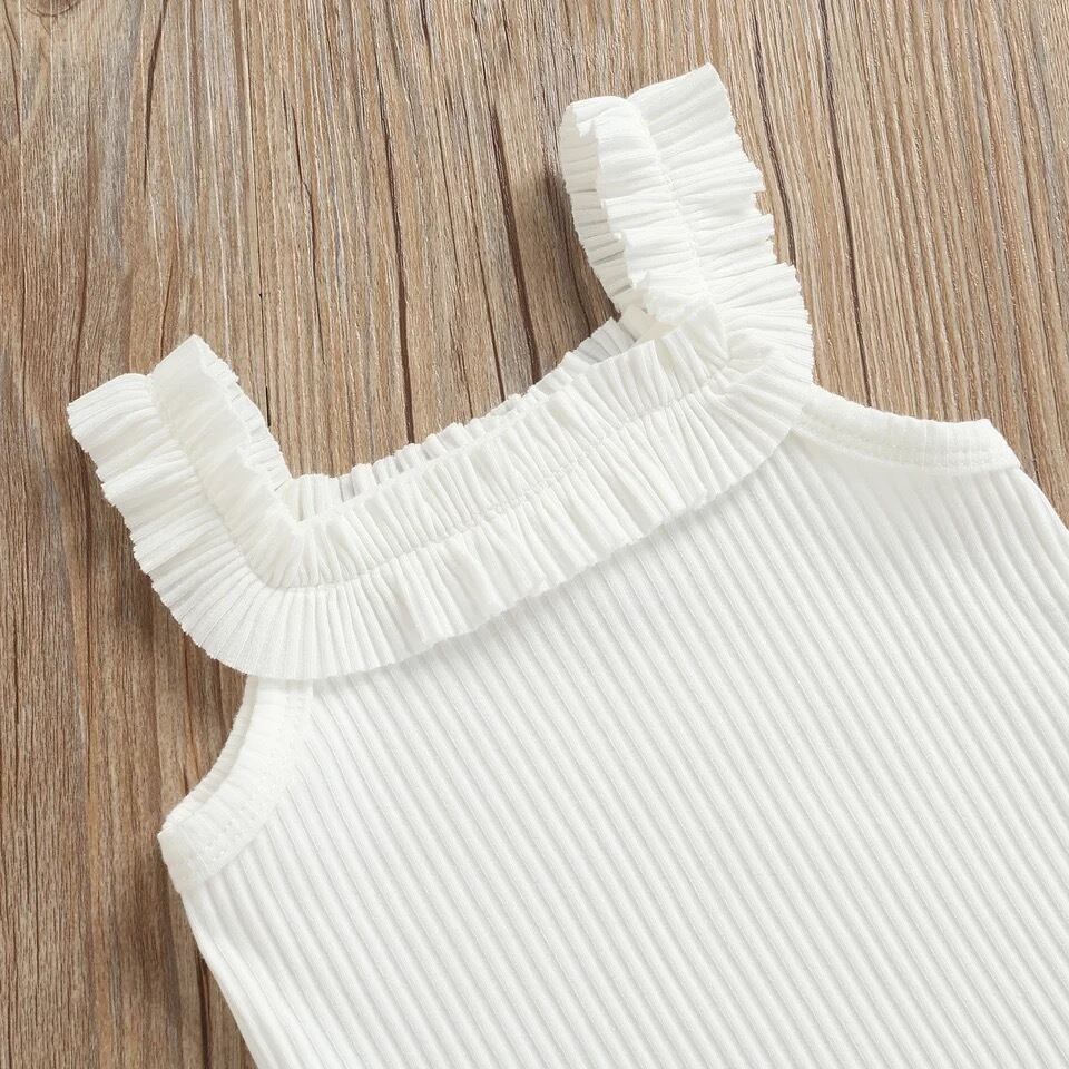 ノースリーブの無地のフラウンス付きロンパースです!フレアパンツがとても可愛いです!!